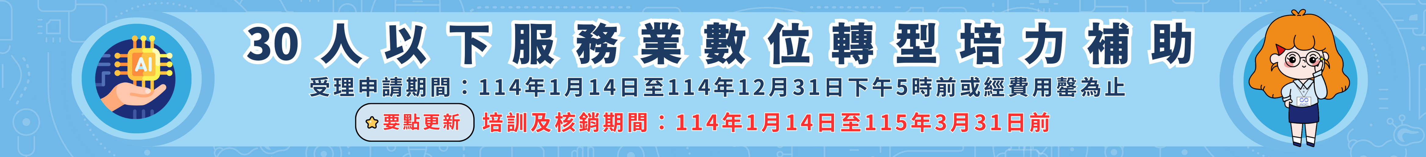 經濟部針對「30人以下」企業提供全額培訓補助,並協助爭取資源。缺資金、缺人才?這裡一次解決。